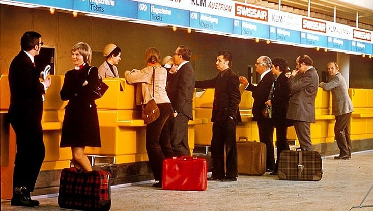 Einchecken am Frankfurter Flughafen 1974